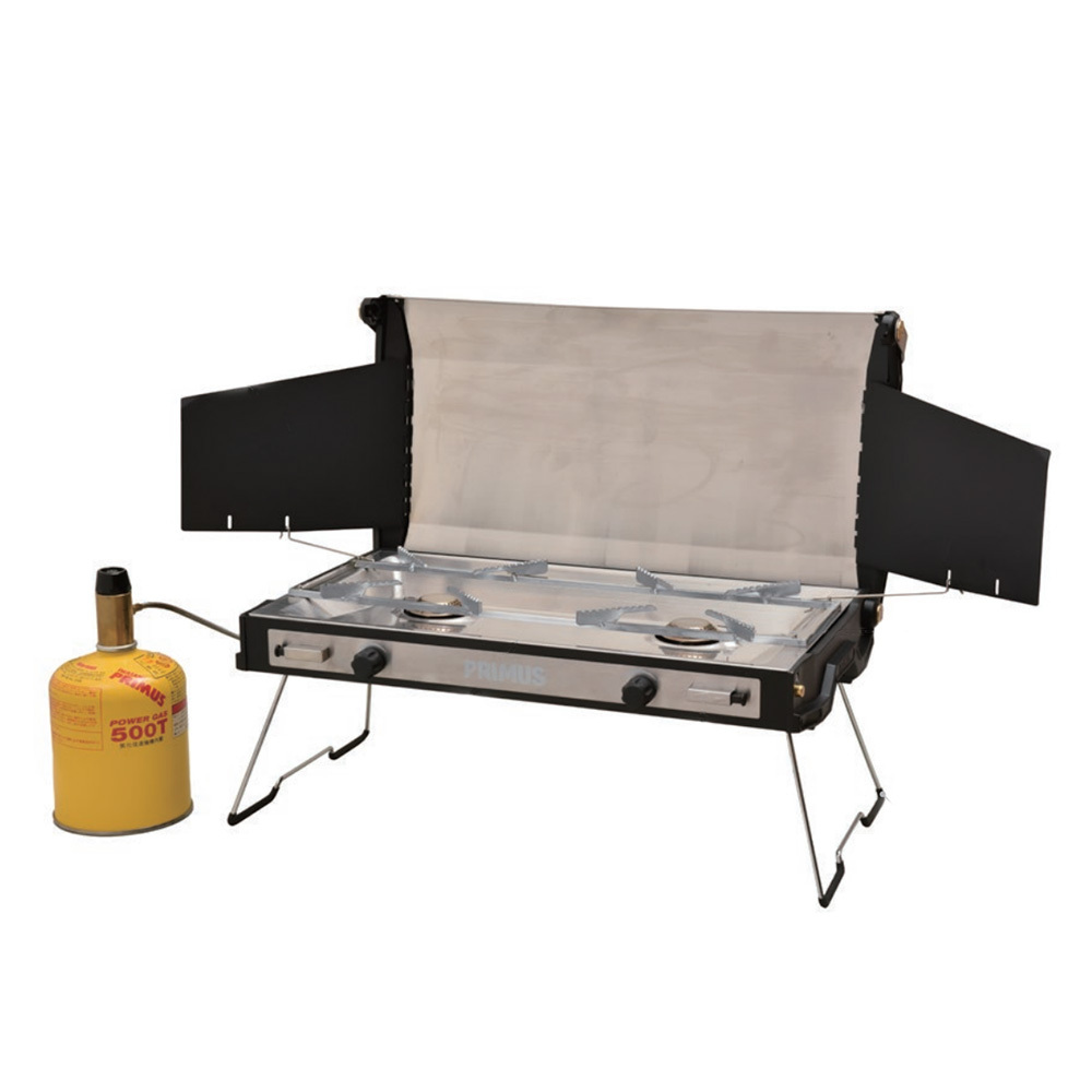 キャンプファイアシリーズのツーバーナー・トゥピケがアップデートしました。ゴトクはステンレス製に変更され耐久性が高まっています。本体底面にレギュレーター(ガス接続部)を固定するパーツを取り付け、持ち運びやすくなっています。持ち手のウッド素材もより触り心地の良い素材へ変更されています。脚部を開くとロックがかかり安定して調理することができます。サイドのウインドシールドにもロック機構が備わっていて強風に強い設計になっています。スタイリッシュなデザインと確かな機能性でアウトドアクッキングをより豊かにしてくれるツーバーナーです。3本のウッドはフラットに並列しているため調理後のフライパン等を置くサーブスペースとして活用できます。