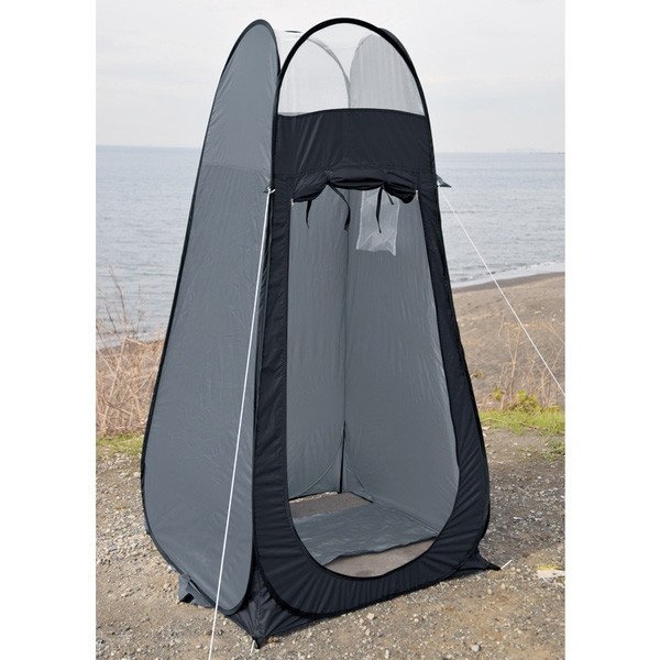 着替え用テントとして、非常用のトイレ用テントとして設営が簡単なパーソナルユーズテント。中が透けて見えにくい、シルバーコーティング。