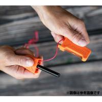 厳しい条件下においても使用可能な着火器です。防災用品としても役立ちます。ストライカー(金属ブレード)でスターター(丸棒)を素早く下側に押し削るようにして火花を発生させ、火種に着火します。