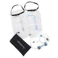 重力を利用したポンピング不要の浄水システムです。4Lの水を、約2分半で自然に落下させて浄水します。汚れた水用と清水用のふたつのリザーバー、それを繋ぐホースと中空糸膜のフィルターカートリッジからなるシステムは、シンプルで軽量なのも利点です。中空糸膜のフィルターは、米国環境庁、全米科学財団のガイドラインに準拠し、99.9999%のバクテリアや、ジアルジア、クリプトスポリジウム、大腸菌、サルモネラ、コレラを含む原虫を除去します。最大約1,500Lのろ過能力があり、バックフラッシュ(水を逆流)させることで洗浄が可能。