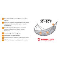優れた暖かさと柔らかさをもった化繊綿PRIMALOFTを使用しています。キルト構造は、身体の自然な輪郭に適応するように作られており、調節可能なshockcordサスペンションを備えたキルトは、DWR(耐久性撥水)加工済みの耐湿性バリアを使っています。ナイロンスタッフサック付で本体の圧縮率が高くコンパクトに収納可能です。