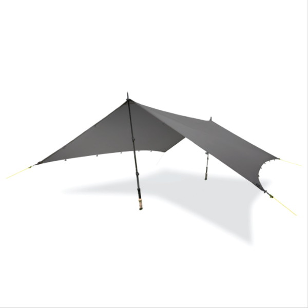 圧倒的な張りやすさと設営バリエーションを実現。軽量コンパクトさとあいまってタープの可能性を広げます。手裏剣シルエット。前後2辺のテンションスリーブ。21か所ものジョイントポイント。これらのユニークな機能により約30通りの張り方を実現しました。タープの2辺には紐の入ったスリーブがあり四隅のアジャスターを調整することで自在に幕体を絞り込むことができます。本体には21ヶ所のジョイントポイントがあり、ガイラインとの結合およびポイント同士の結合に使います。ガイポイントを自由に選べるほか複数のタープを連結することも可能です。別売りのインナーテント、NINJANESTを併用することで、オーソドックスなA型テントになります。