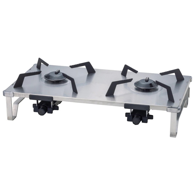 マイクロレギュレーター搭載の薄型2バーナー。ゴトクまでの高さが122mmのテーブルトップタイプなので、だんらんの中心に置いて使用できます。マイクロレギュレーターの効果で低温時、連続使用時の火力低下を最小限に抑えます。従来品から火口径を21mm拡張し、より広範囲かつ均等に加熱できるようになったため中型(φ11~19cm)の調理器具との相性が良く、調理の幅も広がります。火力はそれぞれ2,800kcal/hへアップしました。ゴトクの接地点を1箇所に変更し、左右の風防は着脱式のため、お手入れがしやすい構造に。燃料はカセットガス。