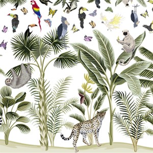 自然の中で躍動感ある動物達と生き生きとした植物を描いた転写紙ジャングル。