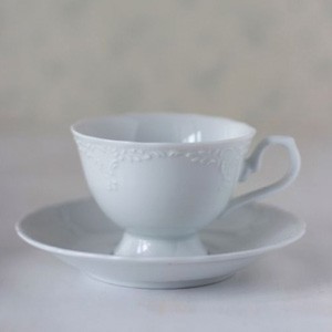 カップとソーサーに細かいレリーフがついて可愛いです。