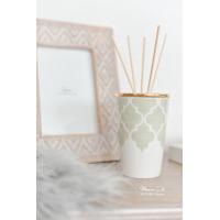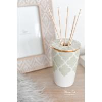 ・白磁のソープディスペンサー、ソープトレイ、パフュームボトルなどにあしらって、オシャレでナチュラルな空間を。