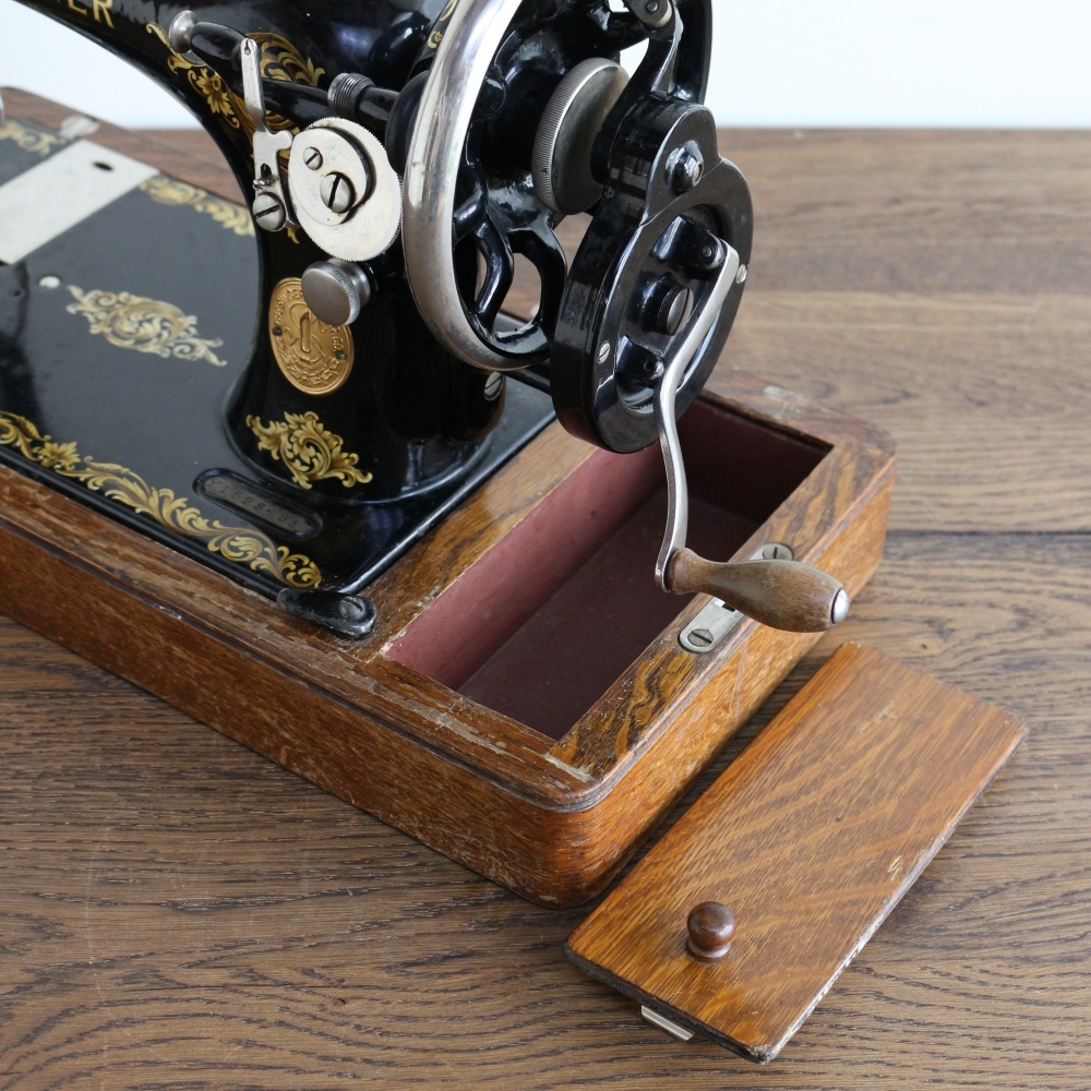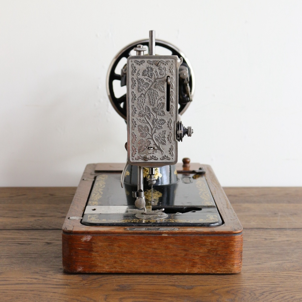 現在のミシンと違い、アンティークミシンにはプラスチックが一切使われていませんから、ずっしりと重いのが特徴です。ミシンを傾けたり、持ち運びの際には十分お気を付けください。