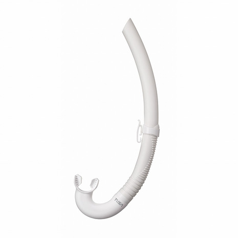 ●シンプルで洗練されたデザイン。女性にも加えやすいコンパクトなマウスピースを採用。スノーケルアダプターを搭載し、マスクにも装着可能