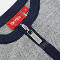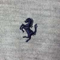 さわやかなグレーに、襟や裾・袖は差し色ネイビー、左胸にはフェラーリのロゴが施されているので、ちょっぴり大人っぽさも演出できます。