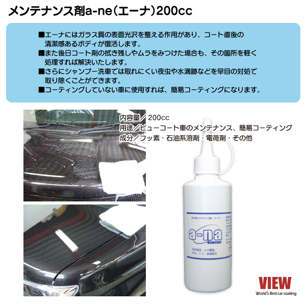 「メンテナンス剤a−na(エーナ)」・200cc入 コーティング後のメンテナンスに!