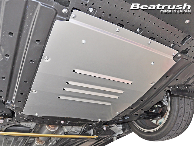 アンダーパネルは、高速走行時にボディ下面の整流効果を向上させダウンフォースを発生させます。 またエンジンルームに巻き込む空気の流れを抑えます。 ベンチレーターを設けることによりエンジンルームの熱を効率良く排出しエンジンのヒートアップを防ぎます。 2.0mm厚のアルミ材を使用し重量増にも配慮しました。