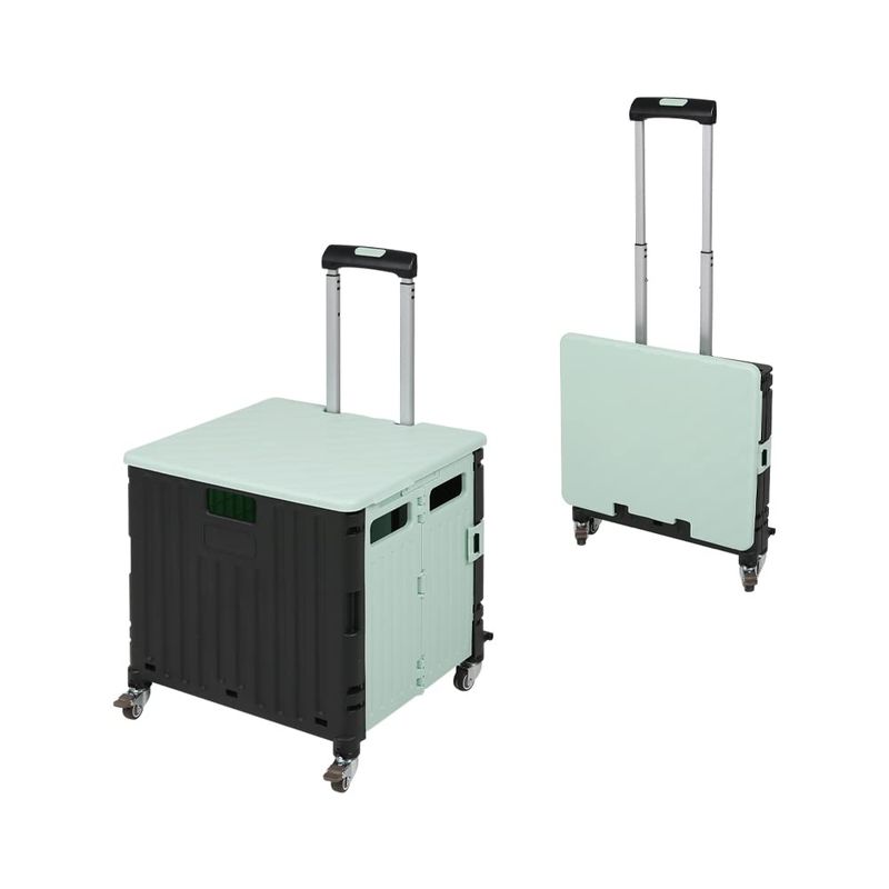 お買い物やアウトドアで活躍する折りたたみキャリーカートです。 折りたたみ式で持ち運びにも便利です。 持ち運びや車への積み込みに便利な持ち手の穴が空いています。 汚れても簡単にお手入れできるプラスチック製です。
