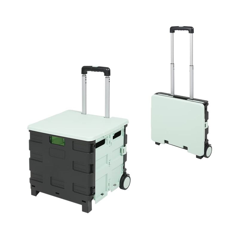 お買い物やアウトドアで活躍する折りたたみキャリーカートです。 折りたたみ式で持ち運びにも便利です。 持ち運びや車への積み込みに便利な持ち手の穴が空いています。 汚れても簡単にお手入れできるプラスチック製です。