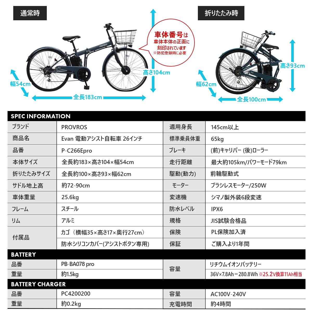 Evan エヴァン 電動自転車 電動アシスト自転車 折りたたみ 26インチ シマノ6段変速 最大105km走行 型式認定 公道可能 VILLAS CYCLE P-C266Epro