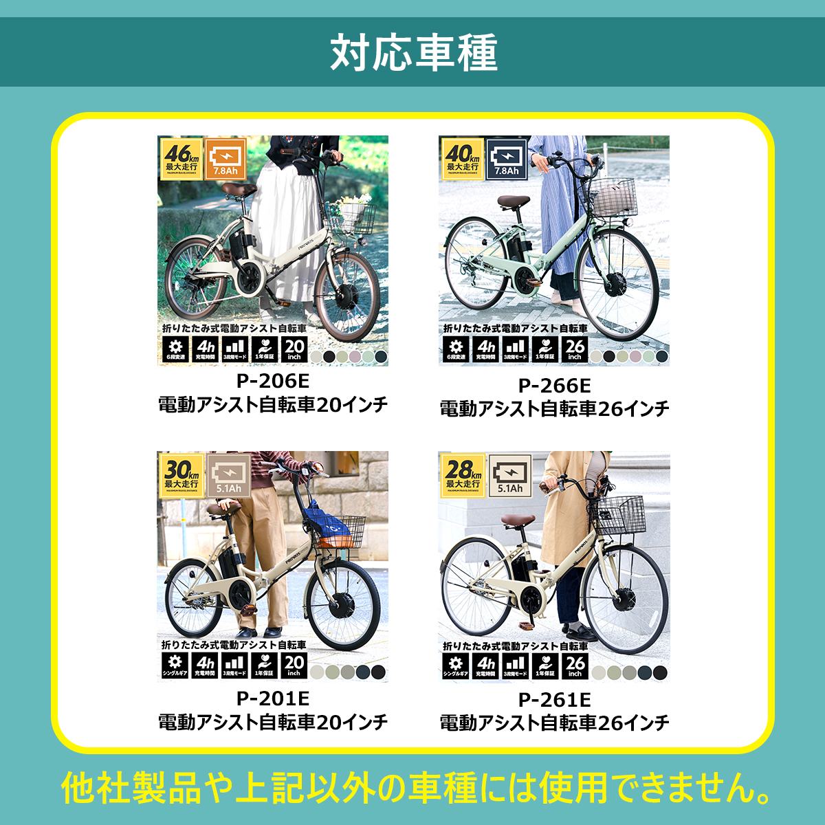 弊社のその他電動アシスト自転車や、他メーカー商品との互換性は一切ございません。