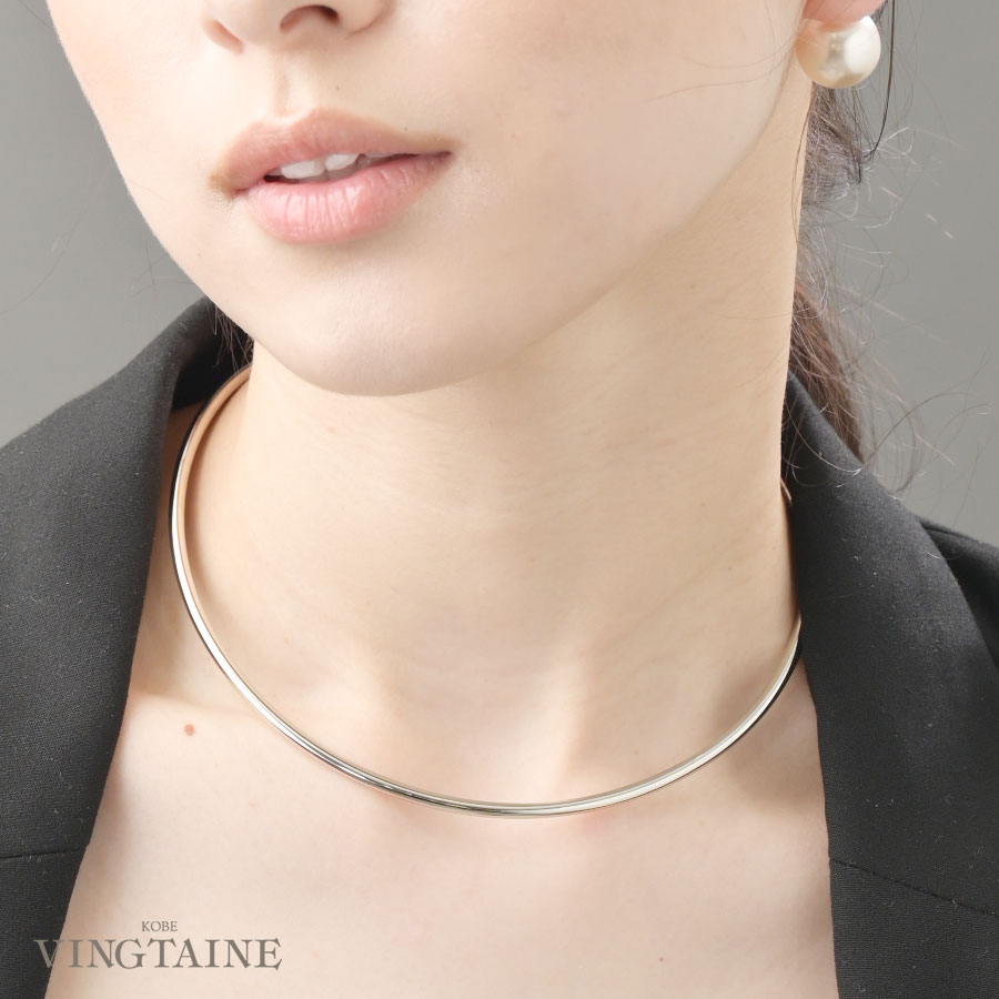 スタイリッシュなメタル素材のネックカフ。さっと着けるだけでいつものスタイリングが都会的な印象に仕上がります。デコルテに馴染む緩いカーブで着用しやすいのも嬉しいポイント。お手持ちのネックレスと合わせても使えるシンプルさが魅力的です。
