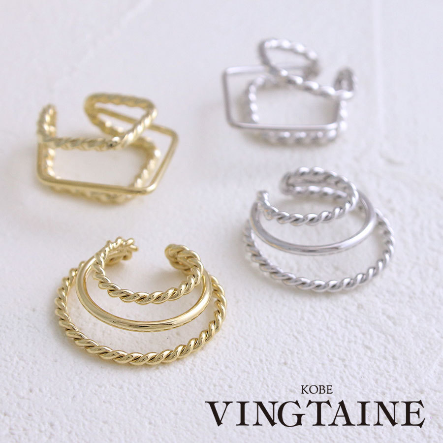 在庫限りのため、完売後の再入荷はございません。また、SALE品のため、返品・交換はお受けできませんので、予めご了承の上お買い求めください。※個別包装・無料ラッピングはお受けできません。小ぶりなサイズ感がデイリー使いにちょうどいい、3連風デザインのイヤーカフ。洗練された印象のスクエアモチーフと、女性らしさが残るサークルモチーフの2パターン。シンプルだから、お手持ちのピアスやイヤーカフとの重ね付けにもぴったりで、オリジナルのアレンジが楽しめます。
