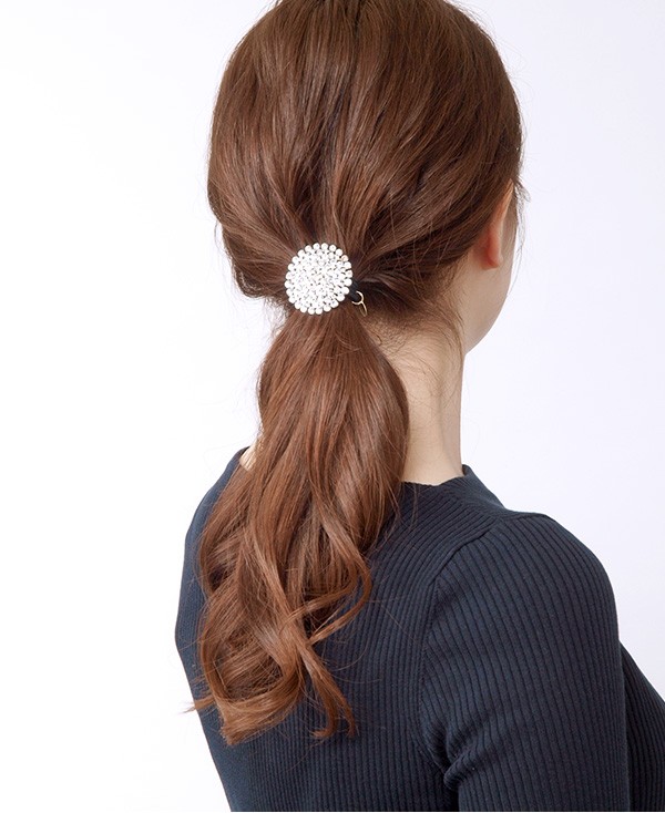 ヘアゴム ポニーフック ビジュー ラウンド (M) ポニーフック シンプル ヘアアクセサリー H-539