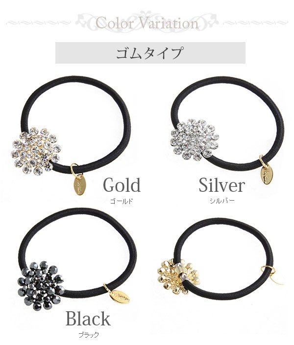 ヘアゴム ポニーフック ビジュー ラウンド (S) ヘアアクセサリー ヘアカフ 可愛い オフィス レディース 結婚式 2次会 H-576