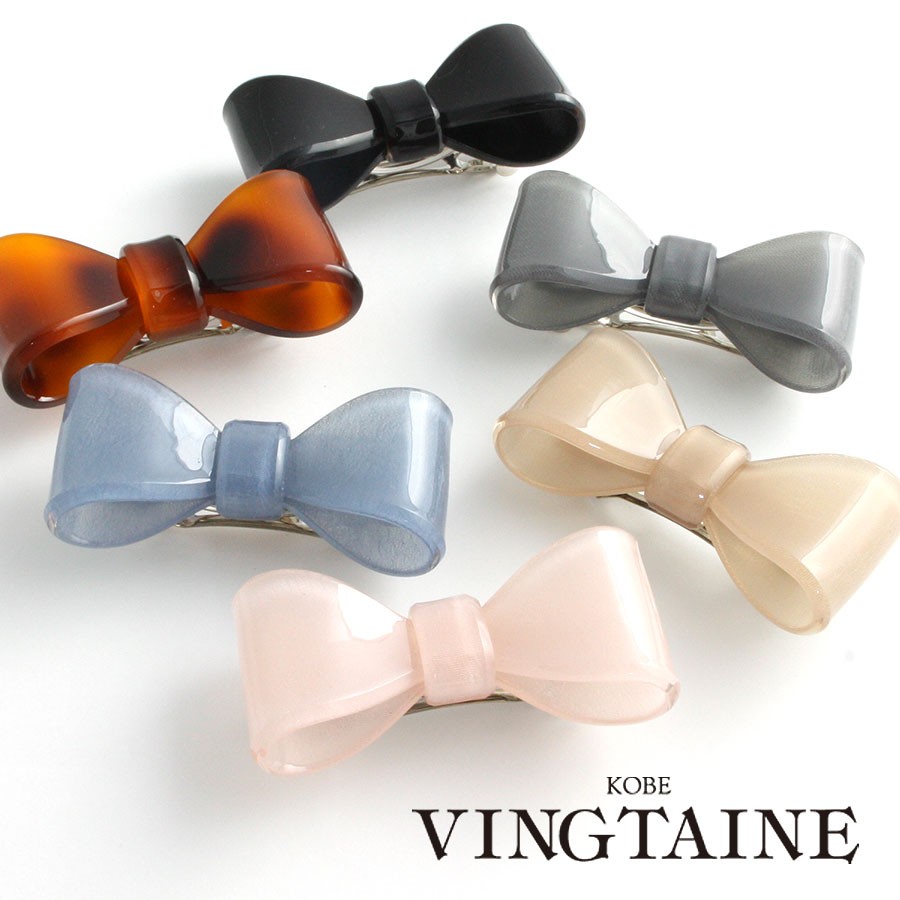 バレッタ リボン べっ甲風 シンプル アクリル ヘアアクセサリーH-677