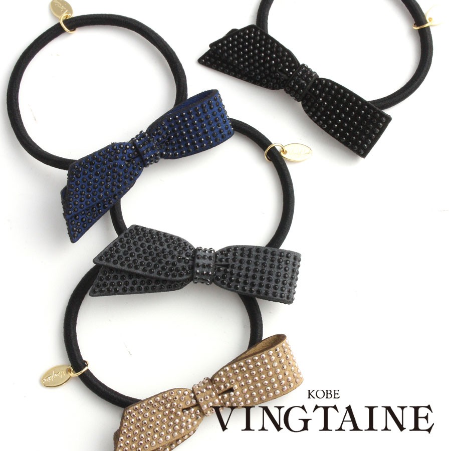 ヘアゴム スタッズ風 リボン ヘアアクセ ヘアアクセサリー 大人っぽい シンプル H-708