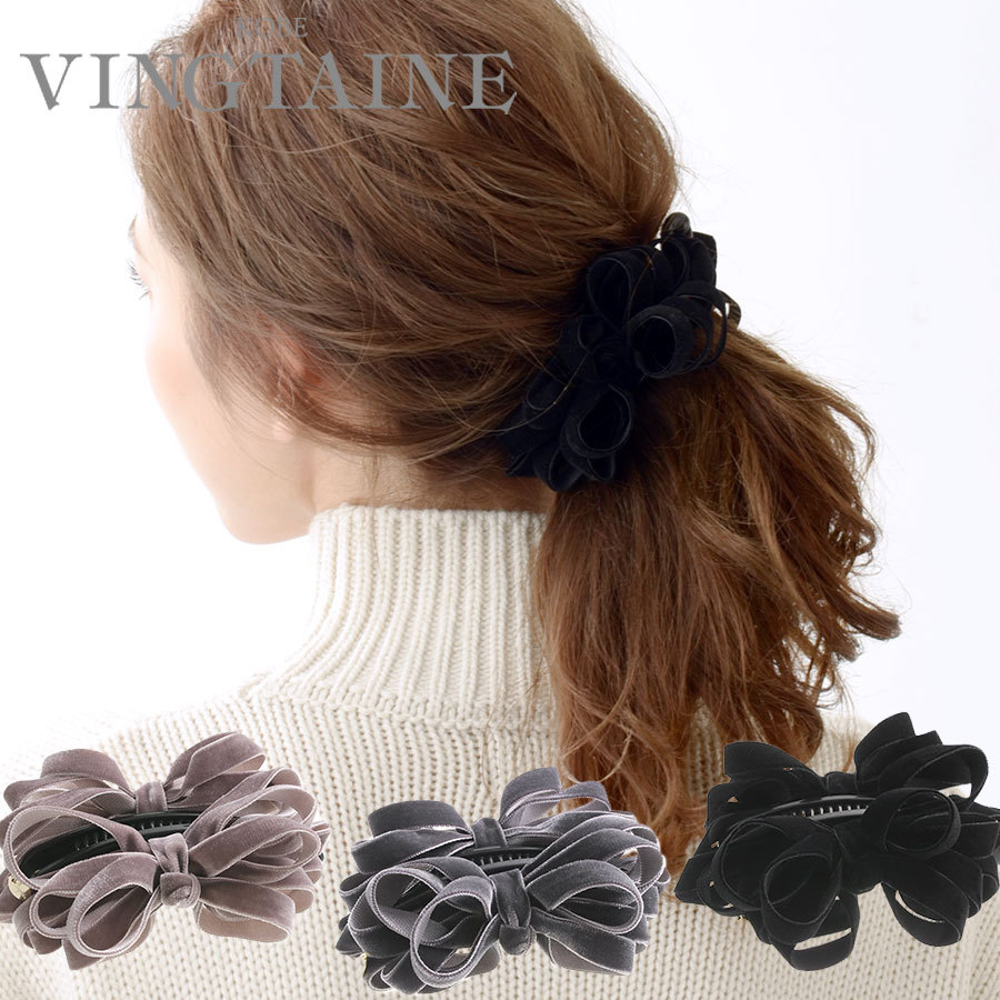 上品な光沢のベルベットで秋冬スタイルをぐっと格上げ!たっぷりのリボンでボリュームもあって、ヘアを可愛らしく華やかに彩ってくれます。無造作なシルエットがいつものまとめ髪に動きをプラス。落ち着いたカラー揃いで大人っぽく合わせられます。