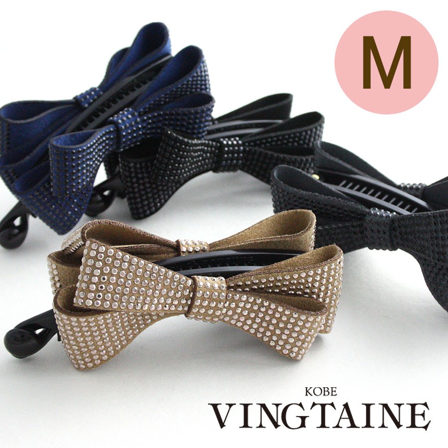 バナナクリップ スタッズ風 リボン ベーシック エレガント ヘアクリップ ヘアアクセサリー H7138 ヴァンテーヌ