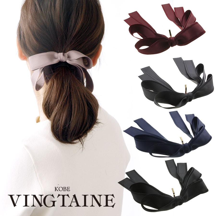 シックで落ち着いた色味が大人っぽい、ロングリボンヘアカフ。いつものまとめ髪に一挿しするだけでぐっと女性らしさが高まり、可愛さアップ!ふんわりボリュームのあるリボンはたっぷり二重にして、ロングヘアと相性のいいバランスを実現しました。