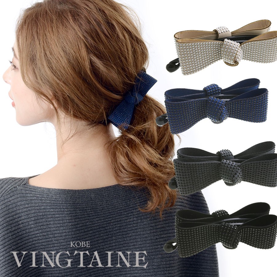 リボン バナナクリップ スタッズ風 ヘアクリップ H7287 アクセサリーSHOP レディース かわいい 大人っぽい