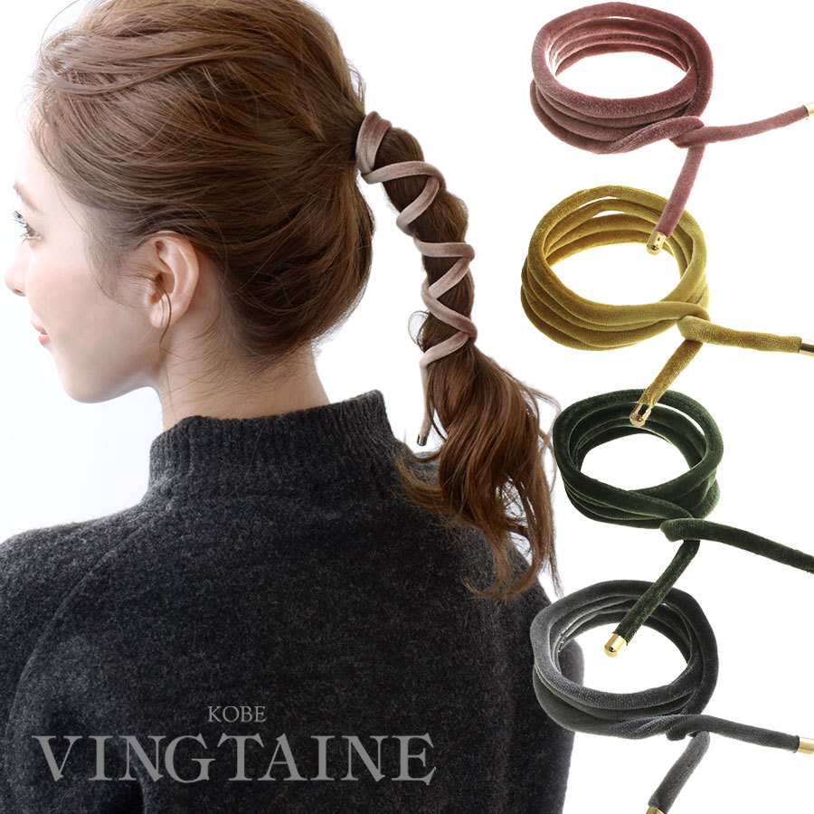 ワイヤーポニー ベロア コード アレンジ自在 紐 ワイヤー入り おしゃれ トレンド 大人 H7368