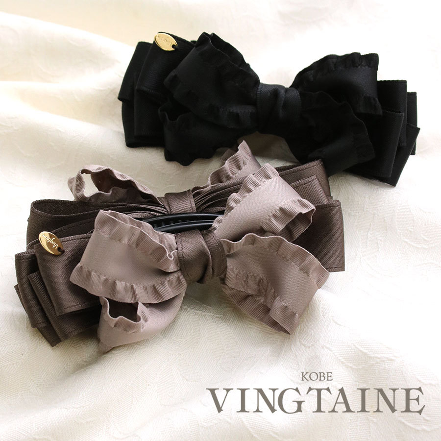華やかなフリルが可愛いリボンバナナクリップ。キュートな雰囲気で挟むだけで大人可愛いヘアスタイルが完成。日常使いから華やかなパーティーシーンもカバーしてくれるヘアクリップです。