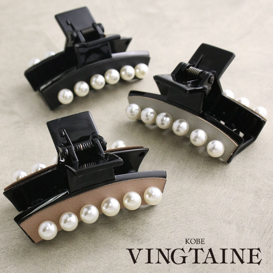 在庫限りのため、完売後の再入荷はございません。また、SALE品のため、返品・交換はお受けできませんので、予めご了承の上お買い求めください。※個別包装・無料ラッピングはお受けできません。一列に並んだパールのラインが印象的なバンスクリップ。フェイクレザー素材とパールの相性も良く、大人な雰囲気が漂う仕上がり。シンプルなシルエットなので日常使いお勧めです。