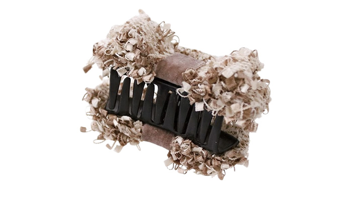 シーズンムード高まるツイード素材のバンスクリップ。クラシックにも大人のカジュアルスタイルにも取り入れやすい逸品。ハーフアップやまとめ髪のゴム隠しにちょうどいいコンパクトなサイズ感も嬉しいポイント。織り込まれたゴールドの糸がキラキラと輝いて華やか。スクエア型の端正なシルエットが上品な印象を与えてくれます。