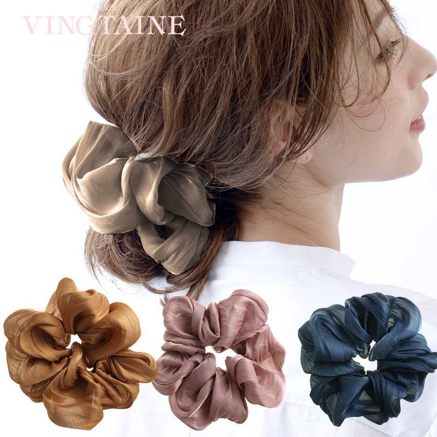 シュシュ シフォン ボリューム ヘアアクセサリー 大きめ ビッグ レディース ポニー HS-143 mbgt