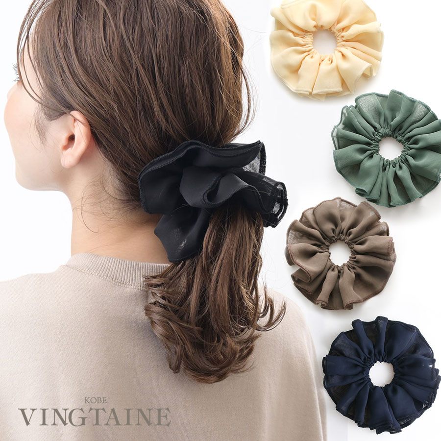 フリルシフォンシュシュ くすみカラー ヘアアクセサリー シンプル カジュアル まとめ髪 HS-160 mbgt
