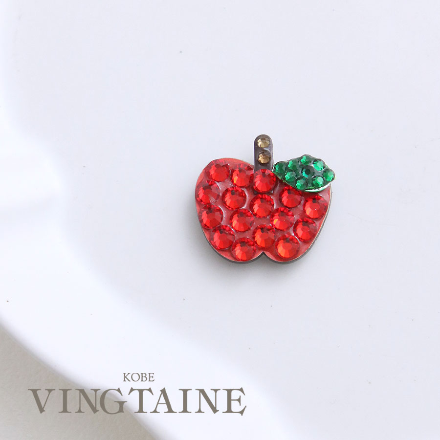 強力マグネットで簡単に装着できるブローチ♪生地に穴をあけたくないシャツやジャケットにも装着できるのが嬉しいポイントです。ビジューを散りばめた細かいデザインが可愛いりんごのブローチ。小ぶりなのでさり気ない大人のお洒落のワンポイントにぴったり。これ一つでもアクセントになるし、他のモチーフと組み合わせて付けたり、色々アレンジも楽しめそう。使わないときは、お部屋のインテリアとしても飾っておきたくなる一品。大切な方へのプレゼントとしてもお勧めです。