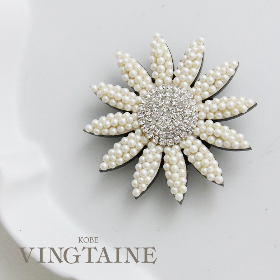 強力マグネットで簡単に装着できるブローチ♪生地に穴をあけたくないシャツやジャケットにも装着できるのが嬉しいポイントです。艶めくパールやラインストーンでデザインされたフラワーデザインのブローチ。大ぶりなので程よい存在感があり、大人のお洒落のワンポイントにぴったり。これ一つでもアクセントになるし、他のモチーフと組み合わせて付けたり、色々アレンジも楽しめそう。使わないときは、お部屋のインテリアとしても飾っておきたくなる一品。大切な方へのプレゼントとしてもお勧めです。
