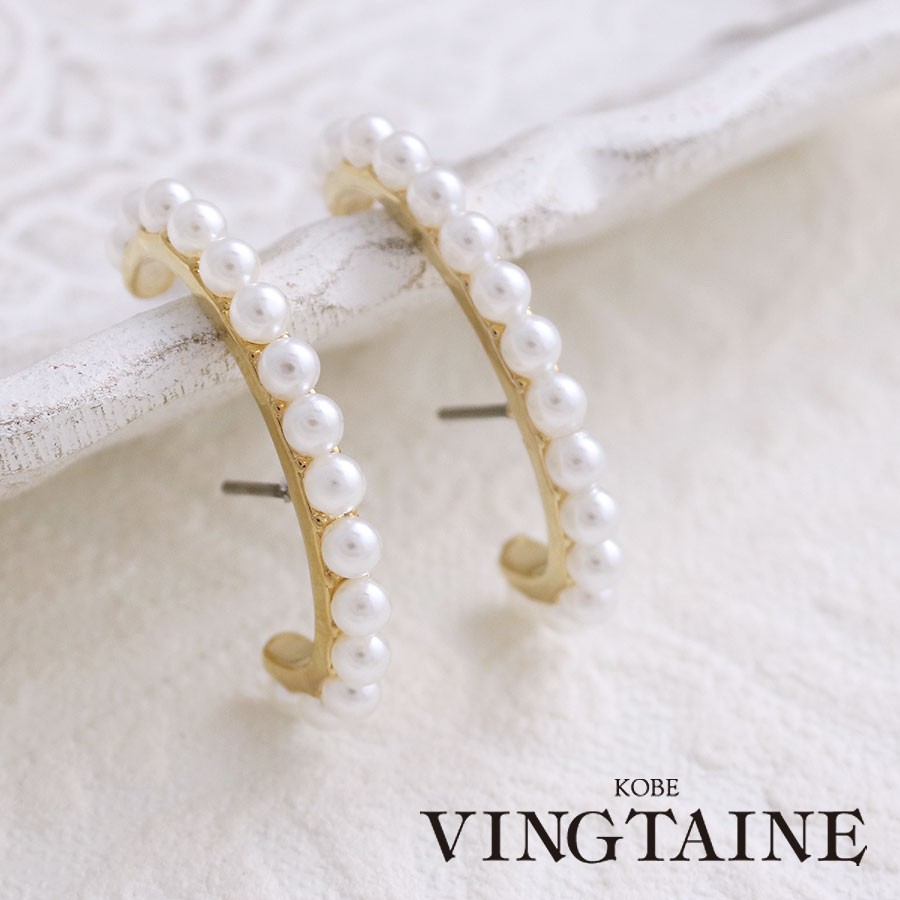 パールが並んだシルエットが愛らしいピアスカフ。イヤーカフに見立てたデザインが特徴的で、耳もとのコーディネートが楽しめる逸品です。取り入れるだけで華やかなお顔周りになり、デイリーにもパーティーシーンにも活躍してくれます。
