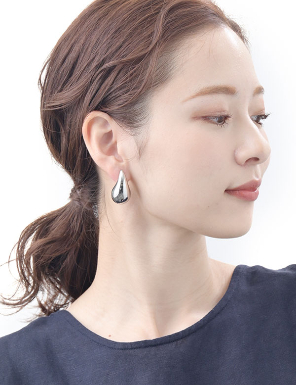 重厚感のあるメタルの質感とぽってりとしたシルエットが耳元のアクセントにぴったりなピアス・イヤリング。一点投入で、いつものスタイルもぐっと洗練されたルックスに仕上がります。CCB(樹脂)にメッキを施したアイテムなので、軽いつけ心地も嬉しいポイント。