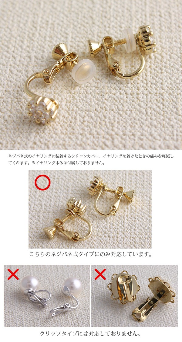 ネジバネ式のイヤリングに装着するシリコンカバー。イヤリングを着けたときの痛みを軽減してくれます。
