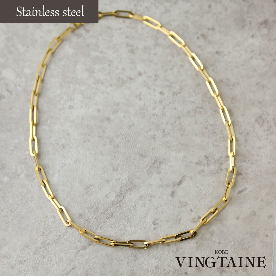 太さ約0.5cmのしっかりと存在感のあるチェーンネックレス。デコルテに沿うデザインで胸元のワンポイントにぴったりな逸品。シンプルだから大人カジュアルなスタイルに合わせやすく、日常使いにお勧めです。汗や水に強いステンレス製で気軽に身に着けられます。