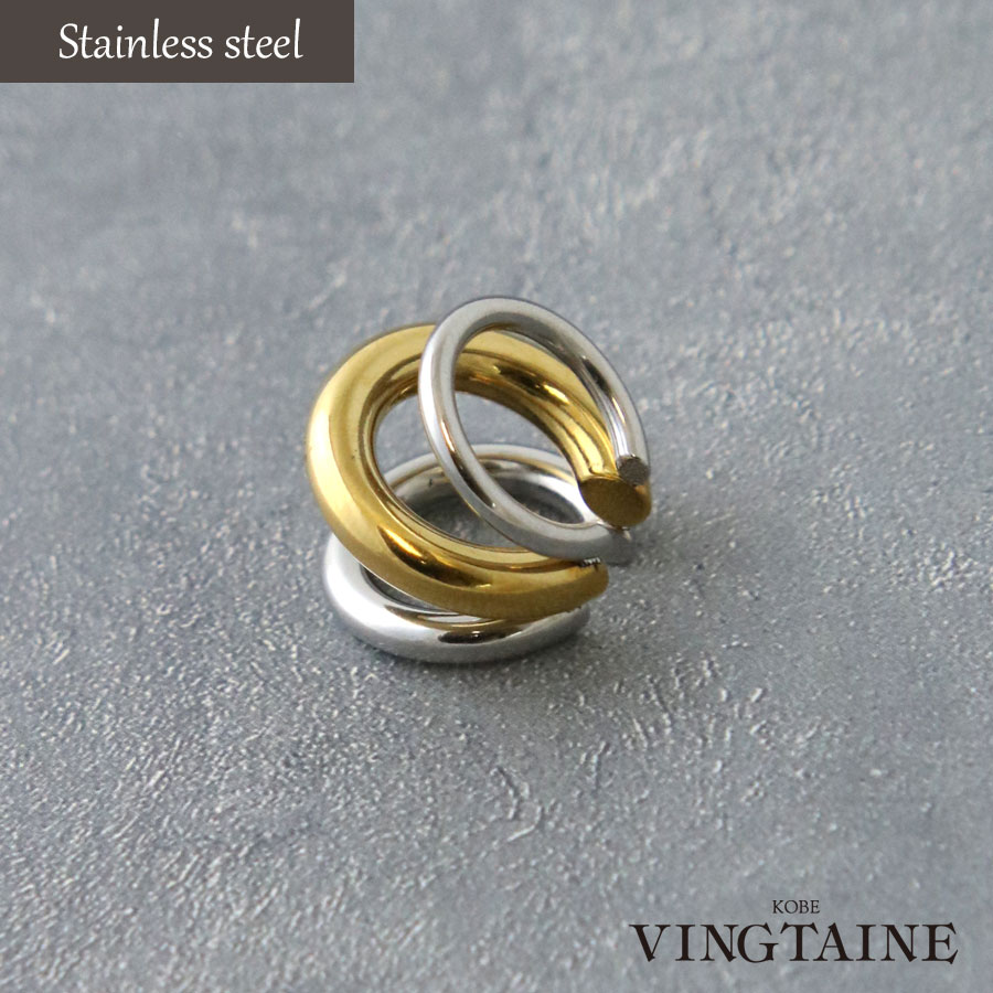 片耳販売 イヤーカフ ステンレス 3連コンビカラー ミックスカラー お洒落 金属アレルギー 対応 TE103 mbgt