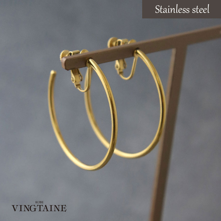 ステンレスフープイヤリング(直径4cm:ゴールド/シルバー)