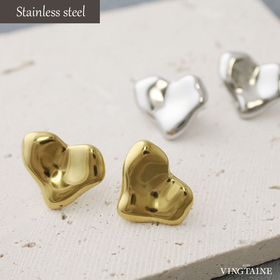 ニュアンスあるシルエットがお洒落な、金属アレルギー対応のハートモチーフピアス。可愛くなりすぎないデザインだから大人カジュアルなスタイルにぴったり。シンプルで取り入れやすく、ちょうどいいサイズ感は日常使いにマッチします。お肌に優しいステンレスアクセサリーなので、着けっぱなしにできるのも嬉しいポイント。