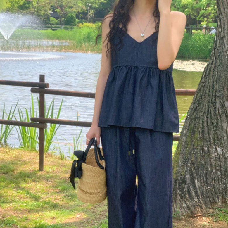 ★夏のカジュアルSTYLEにぴったりデニム風のキャミセットアップ! 【素材】 レーヨン、コットン【サイズ】 ワンサイズ(トップス・着丈、約49m・肩ヒモ、約25cm・バスト、約74cm)(ボトムス・股上、約36m・股下、約70cm・ウエスト、約60〜74cm) ※若干の誤差はご容赦下さい。【カラー】ワンカラー▼生産時期によって厚さや色味が若干異なる場合がございます。 ▼色合いはモニター環境により若干の誤差が出ます。 ▼サイズ表記は手作業にて行っておりますので、 実物と若干の誤差が生じる場合があります。
