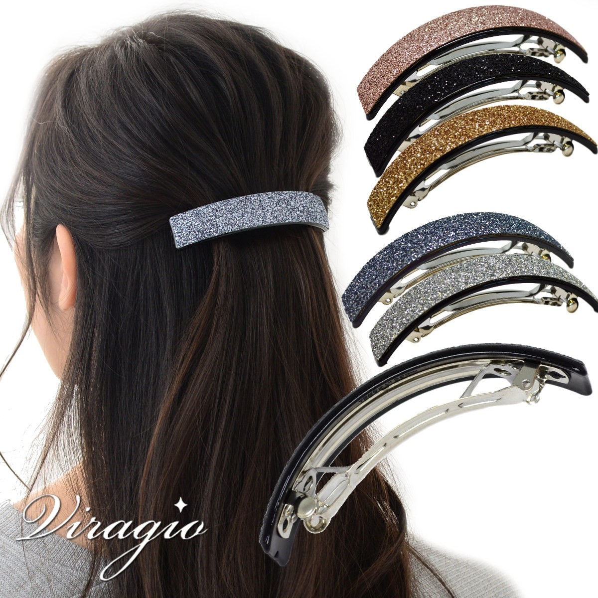 バレッタ ラメ 髪留め 髪飾り 黒 シンプル カジュアル ヘアアクセサリー ヘア ゴールド 結婚式 ブランド vi-1287