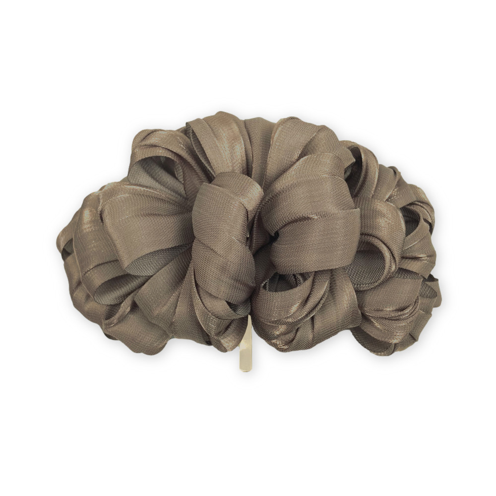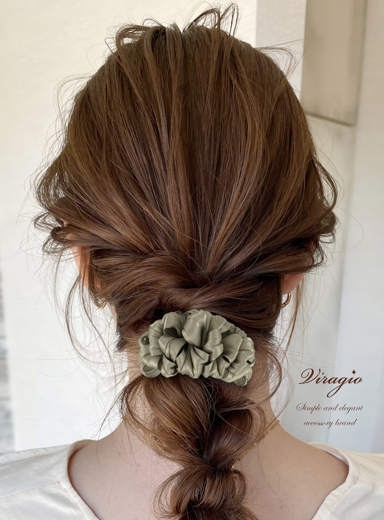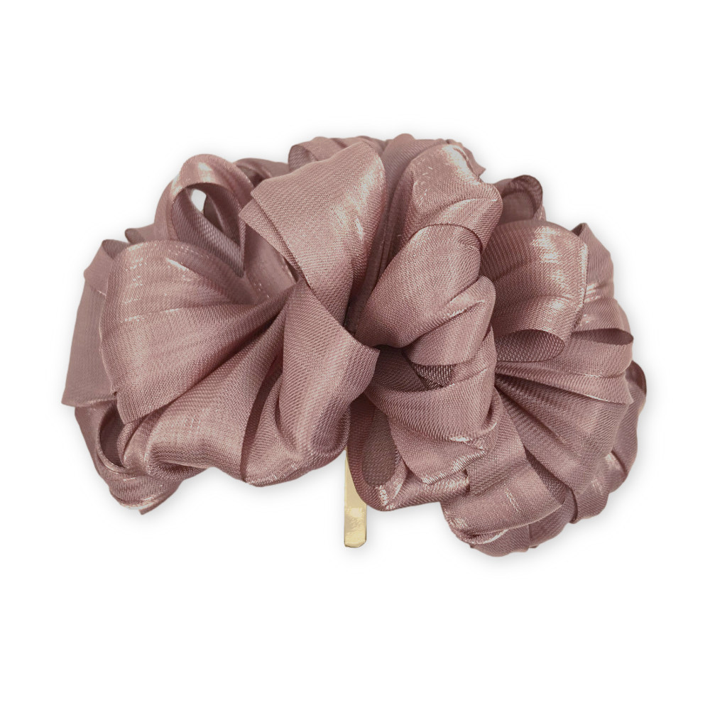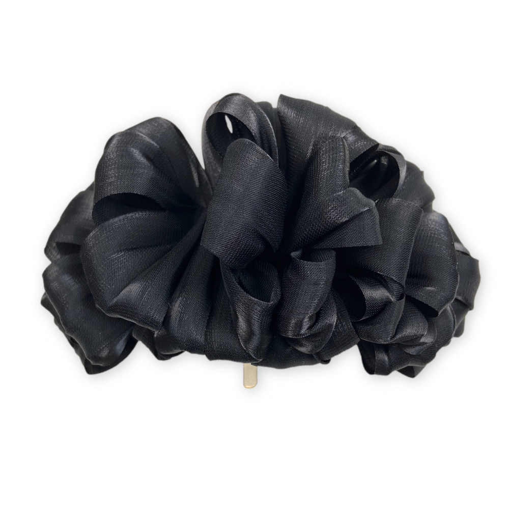 艶めくふんわりリボンがお洒落なポニーフック。ヘアゴムの結び目に