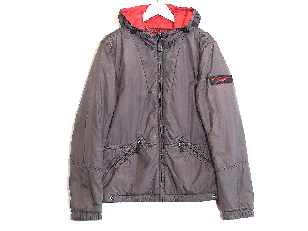 BURBERRY バーバリー SPORT スポーツ フード ラバーロゴワッペン ダウンジャケット 軽量 メンズ ・M グレー|レッド