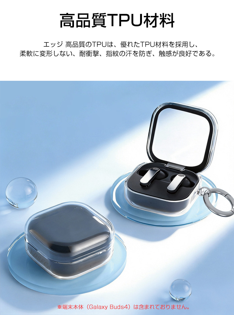 | 商品名 | Galaxy Buds4 ケース Buds 4 Pro クリア カバー 透明 TPU シンプル カラビナ付き クリーナーペン付き クリアケース 保護カバー おすすめ おしゃれ Samsung ギャラクシーバッズ4 / バッド4 プロ ワイヤレスイヤホン 傷防止 保護ケース | |||||
