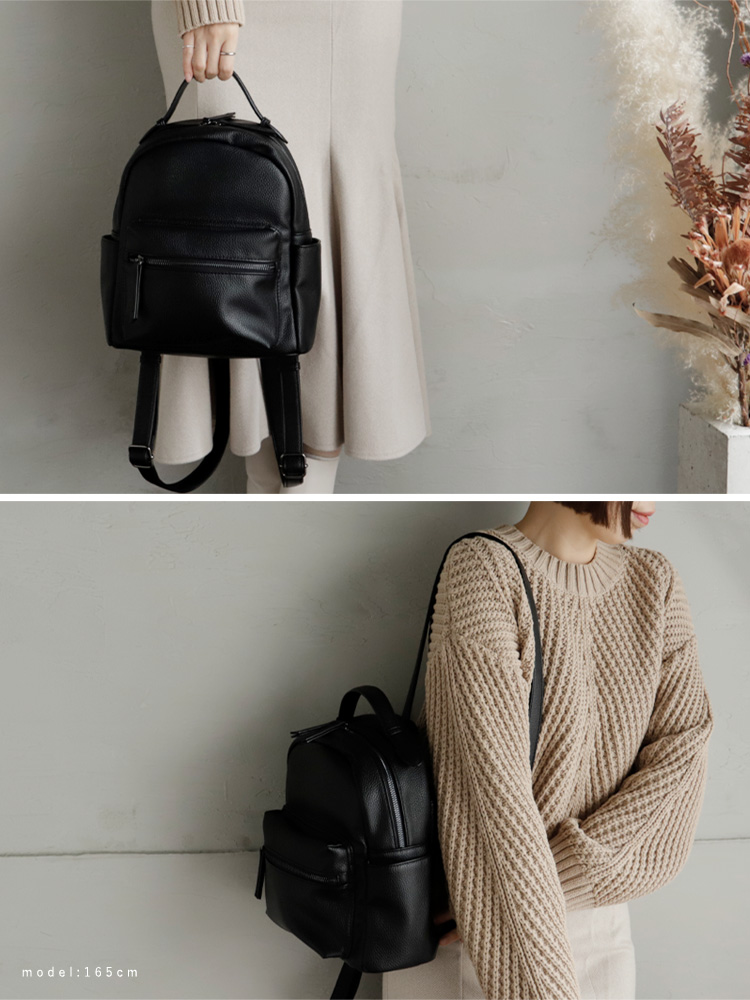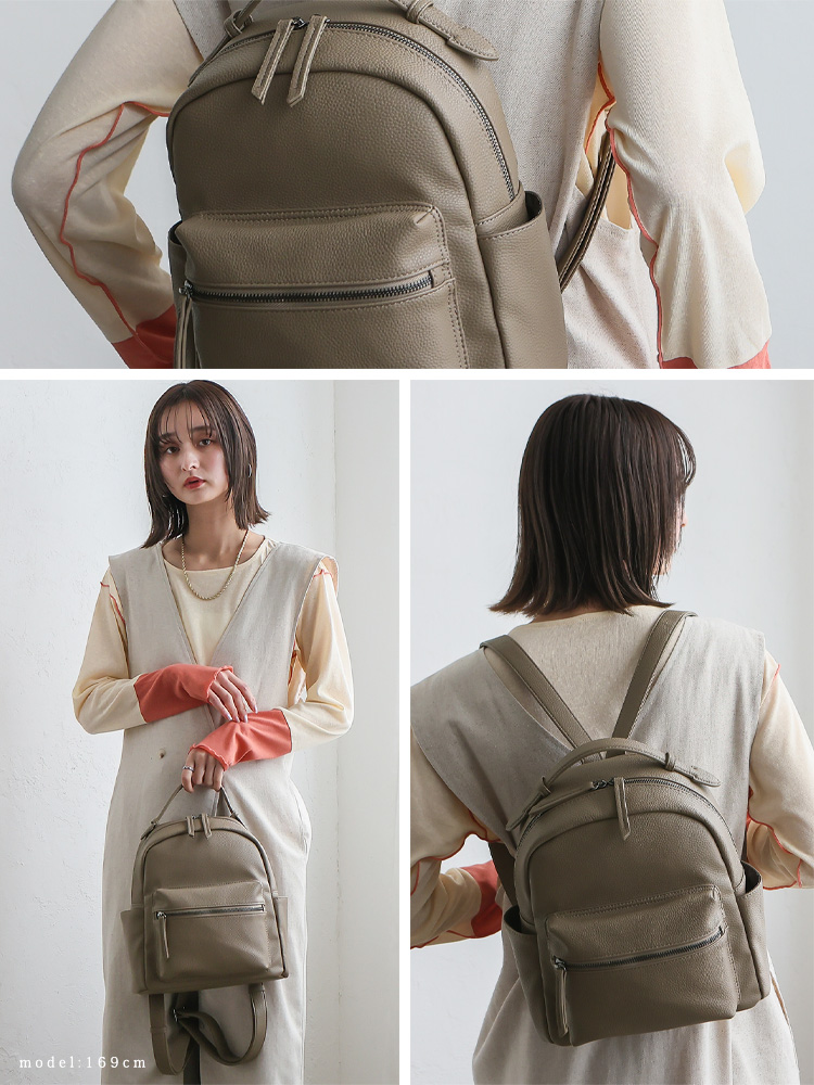 女性が背負いやすいサイズ感とフォルムのリュック。